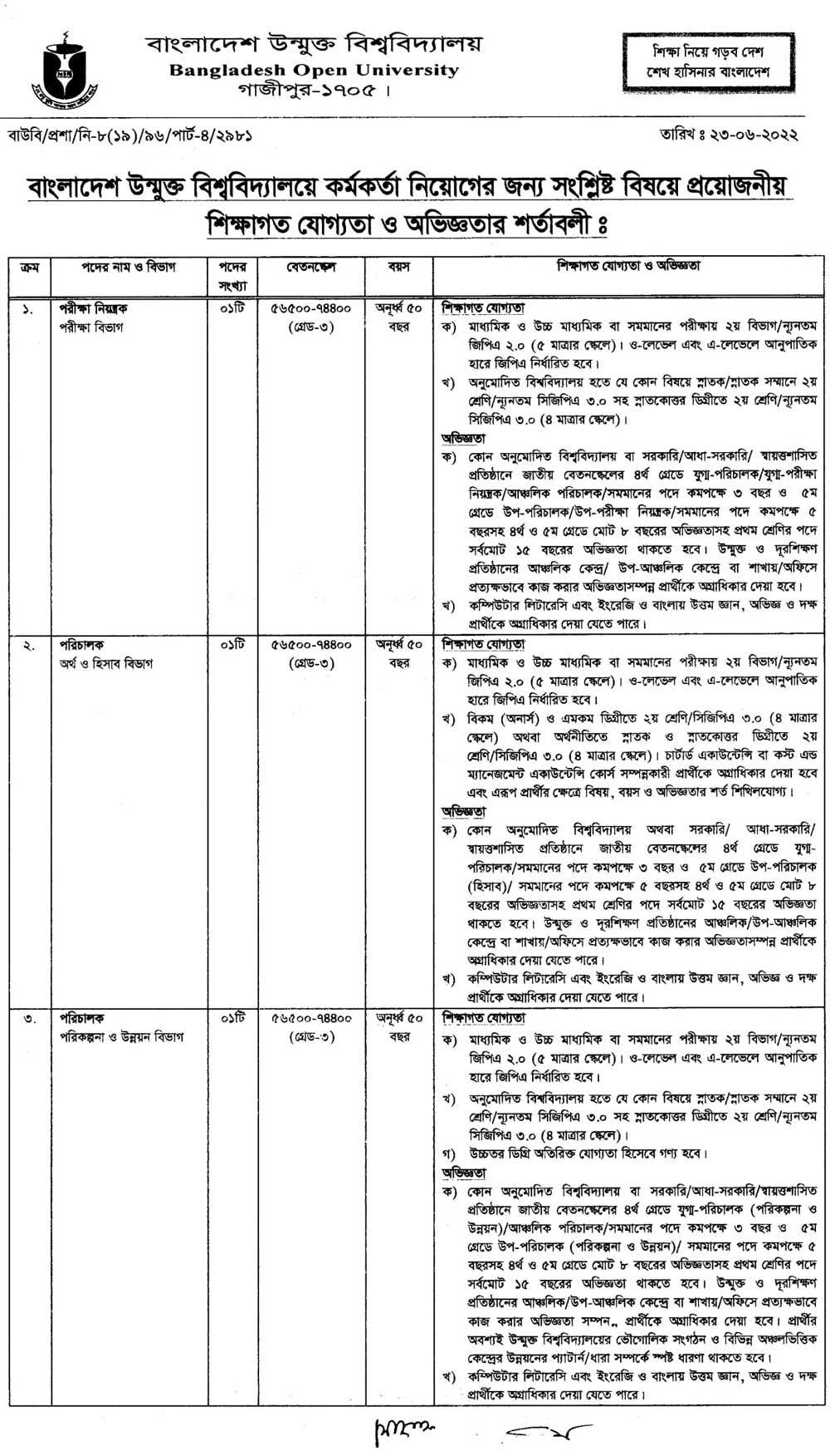 বাংলাদেশ উন্মুক্ত বিশ্ববিদ্যালয় নিয়োগ বিজ্ঞপ্তি ২০২২